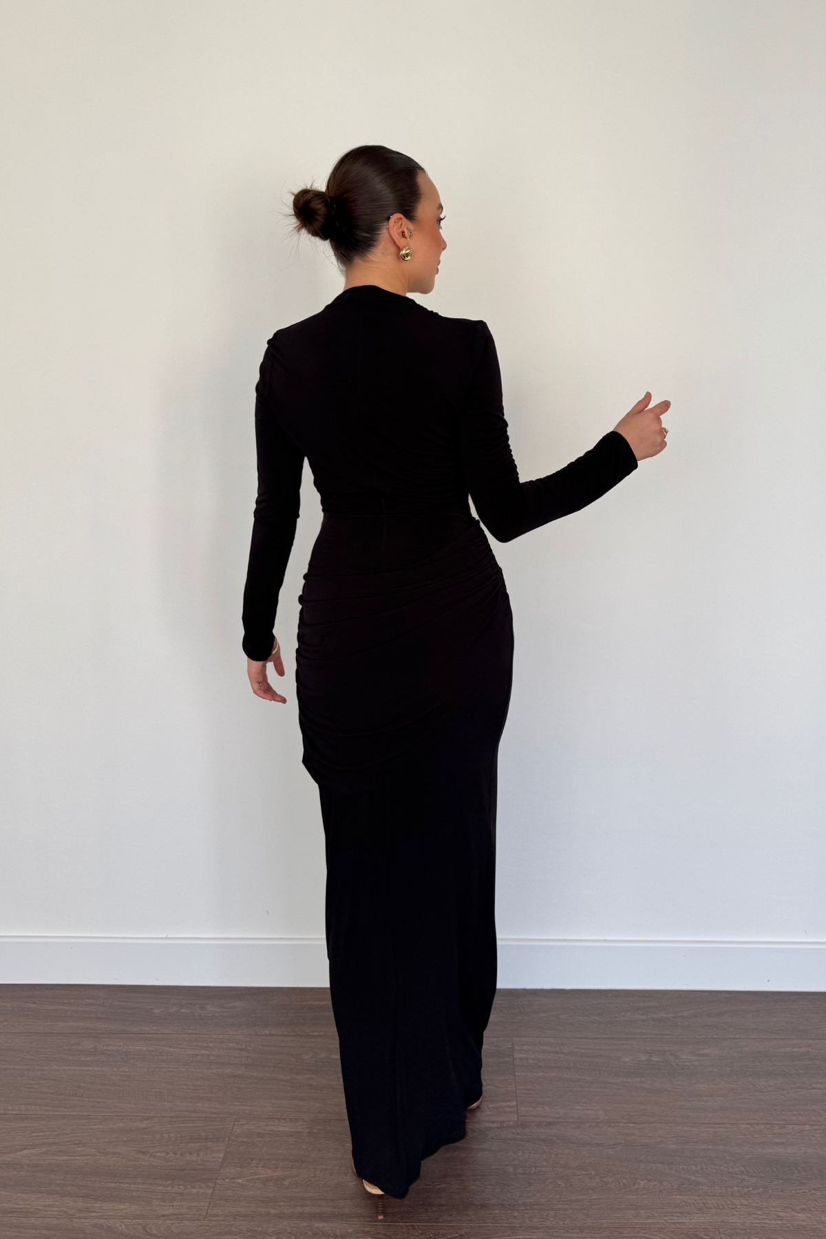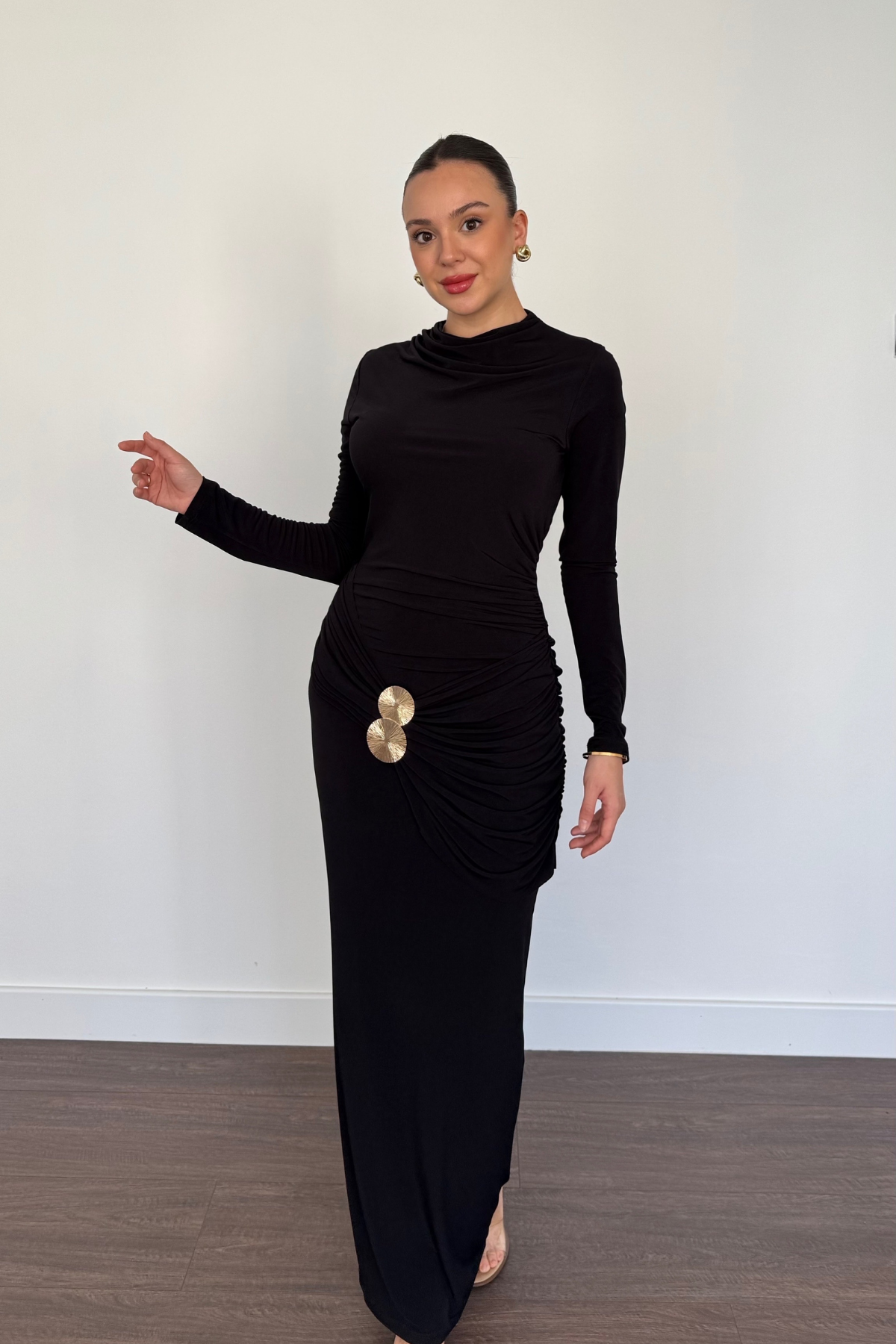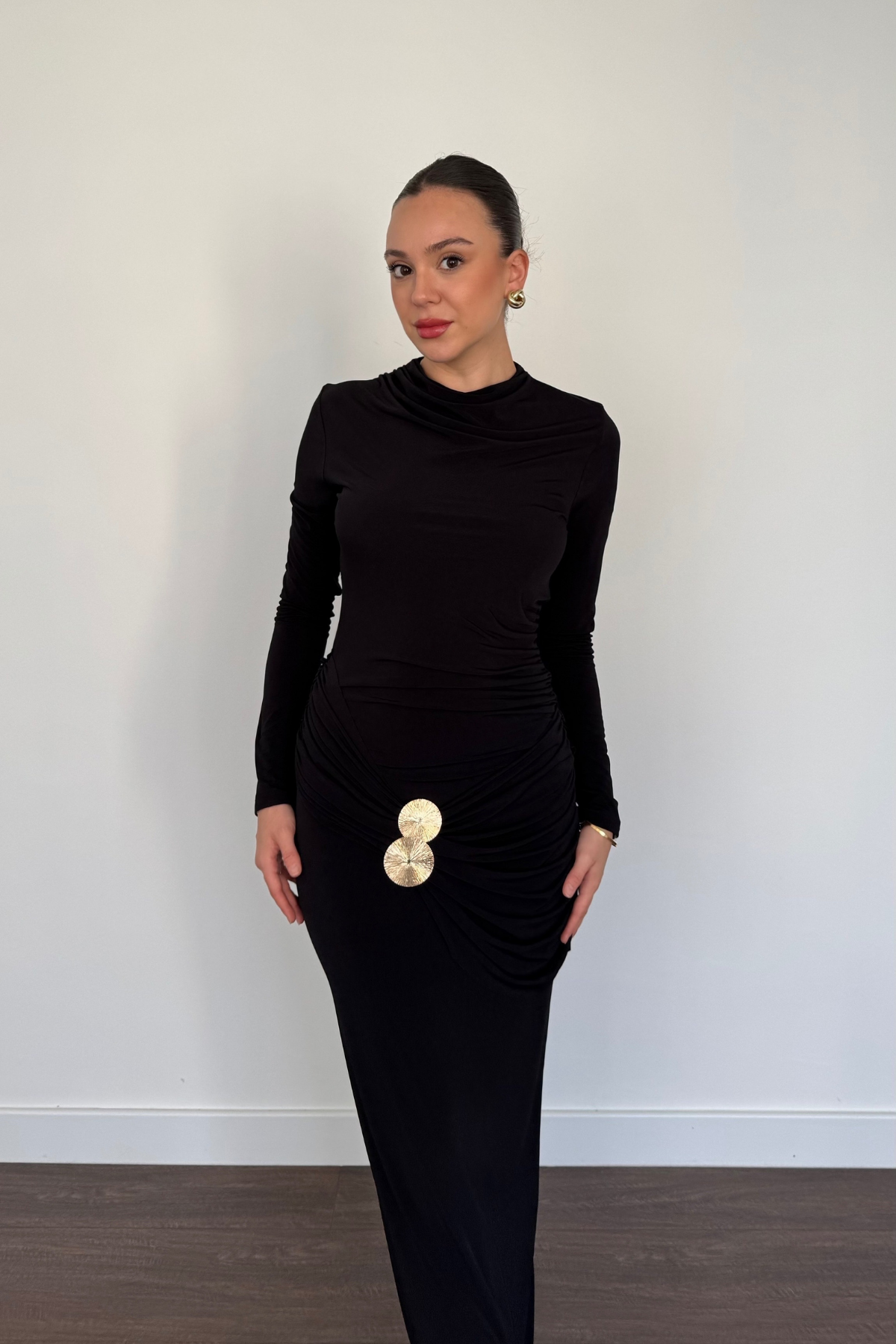 Bel Aksesuarlı Elbise-Siyah
