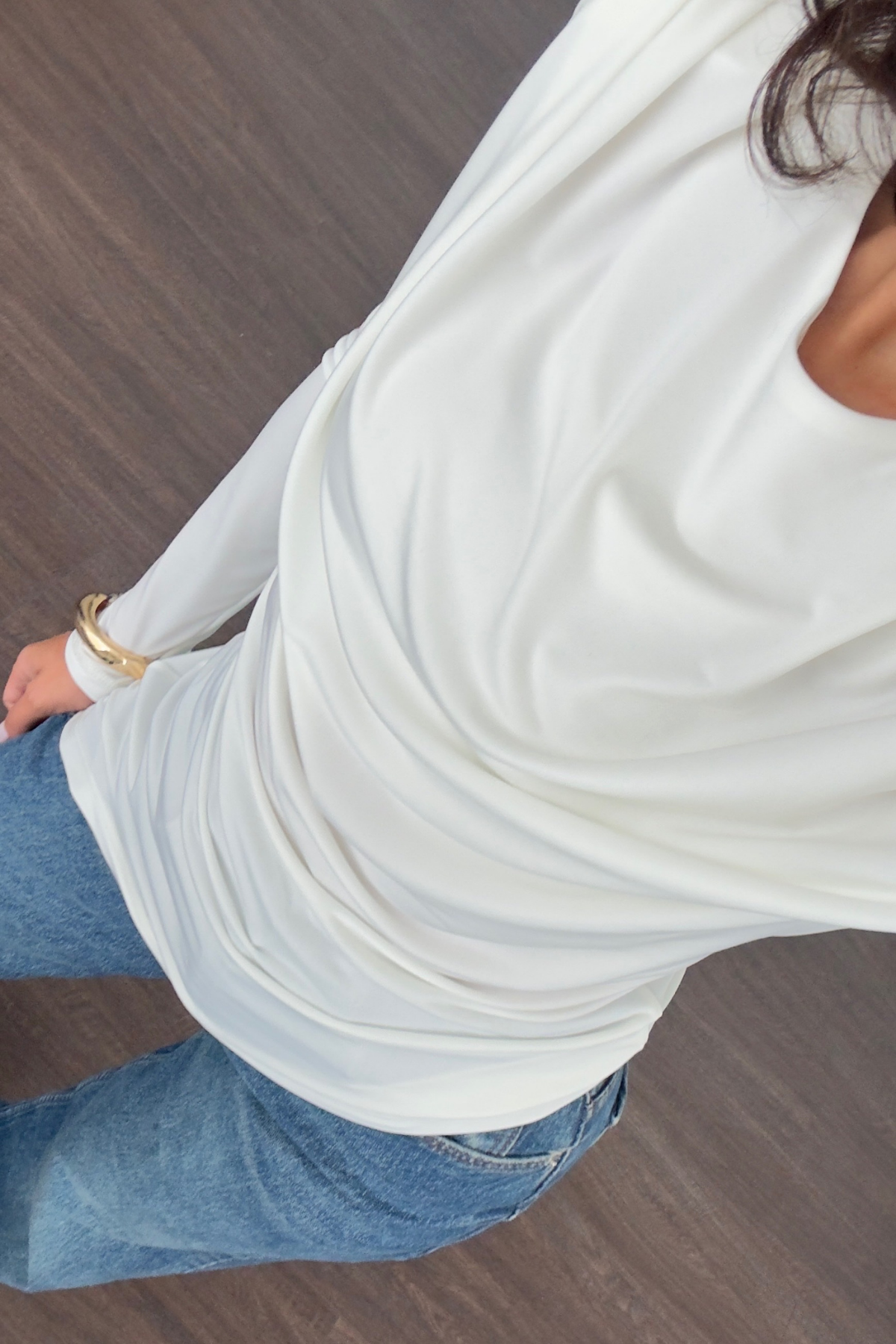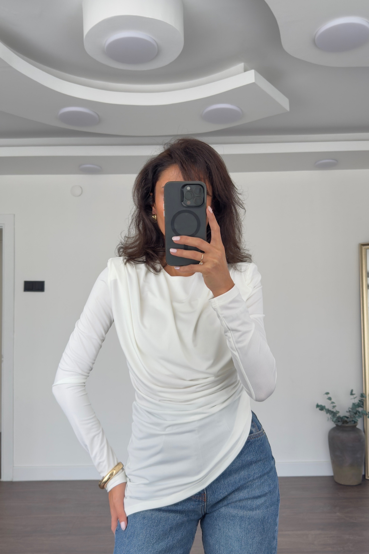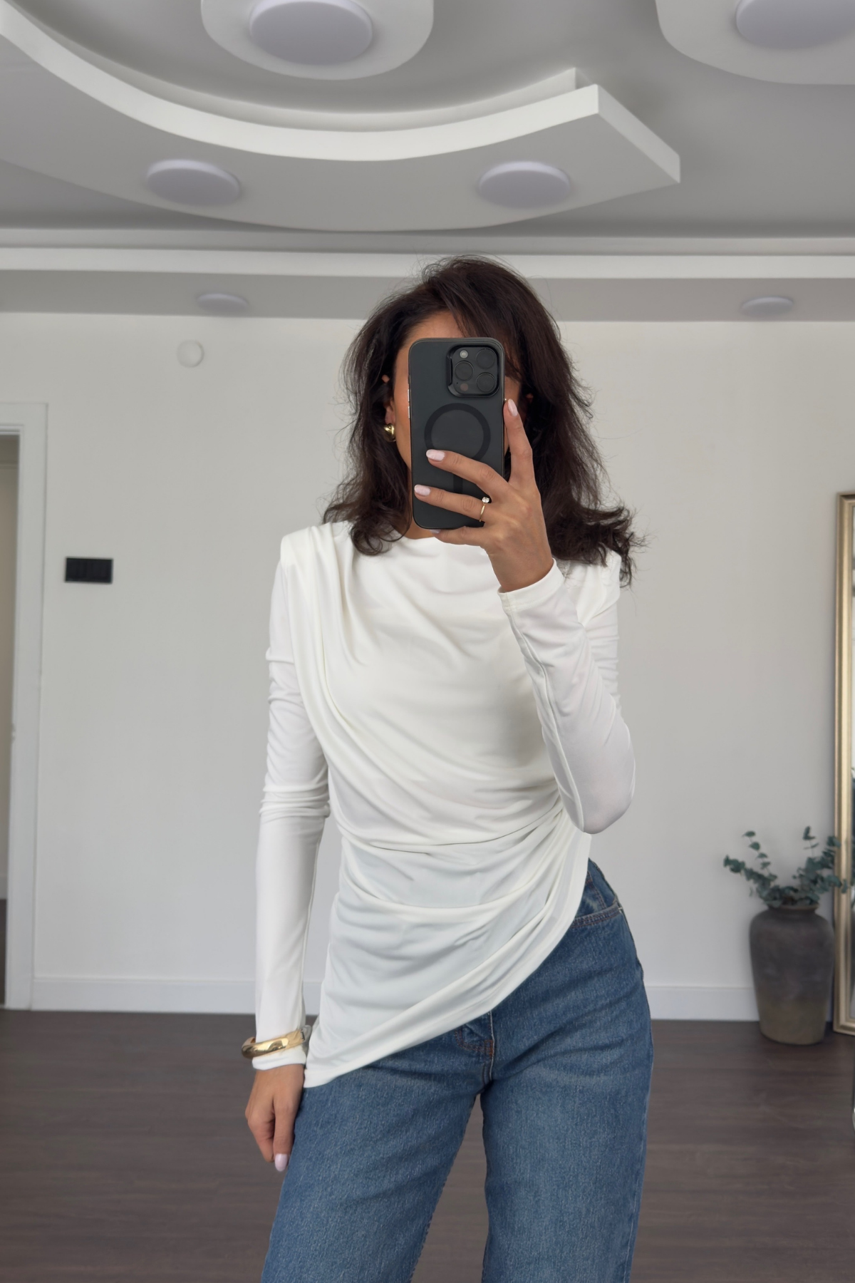 Omuz Vatkalı Bluz-Beyaz