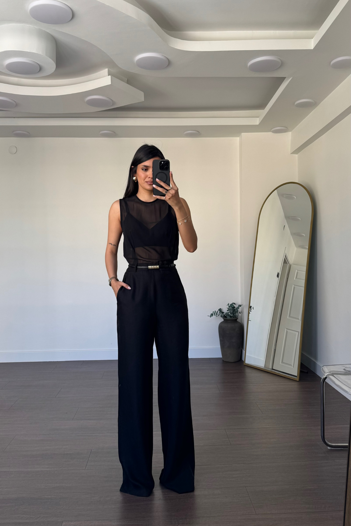 Tül Detaylı Tulum-Siyah